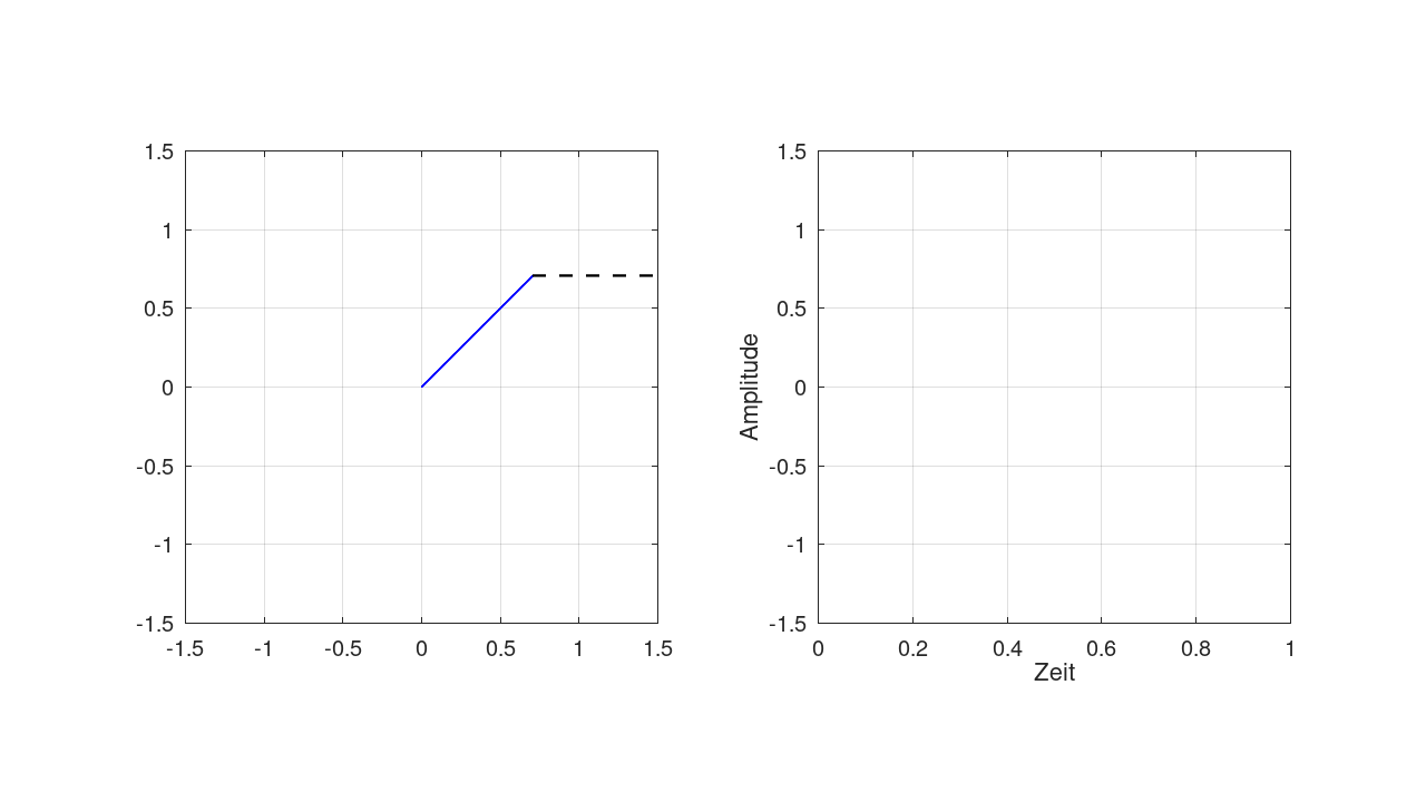 Die PSK schaltet die Phase des Trägers (mehr oder weniger) hart um. Die BPSK beispielsweise um 180°, dies bedeutet, dass der Zeiger entsprechend auf die gegenüberliegende Seite springt.